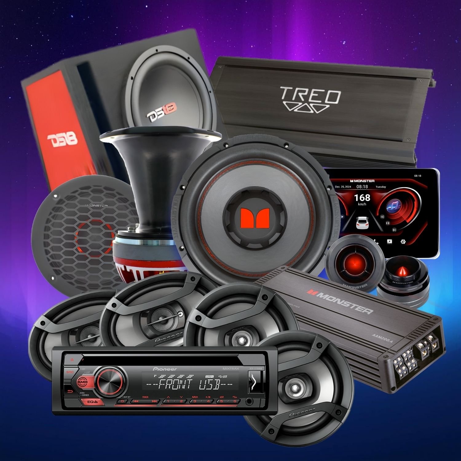 Tenemos en existencia amplia variedad de autoestéreos, bocinas, amplificadores y pantallas en marcas reconocidas como Pioneer, Rock Series, MTX y TREOa los mejores precios de la región y competitivos con Estados Unidos.